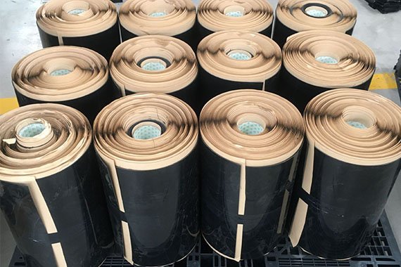 本產(chǎn)品是由性能優(yōu)異的熱熔膠在PE片材擠出過程中復(fù)合成基材,經(jīng)輻射交聯(lián)后二次加工而成。一般厚度為1.2-2.5mm,拉伸強(qiáng)度一般在 15Mpa左右,剝離強(qiáng)度大于70N/CM, 密封效果好。